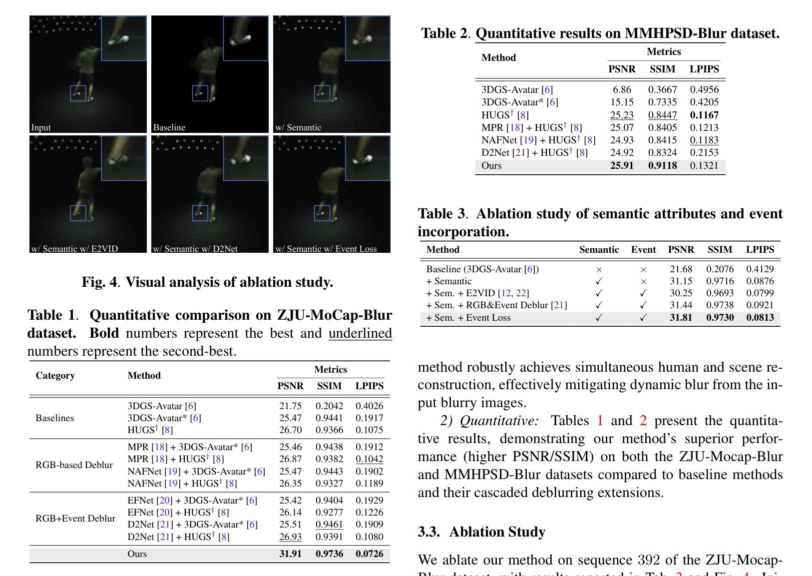 - 在两个基准数据集上实现了最优的重建效果,特别是在高速运动主体上表现突出。