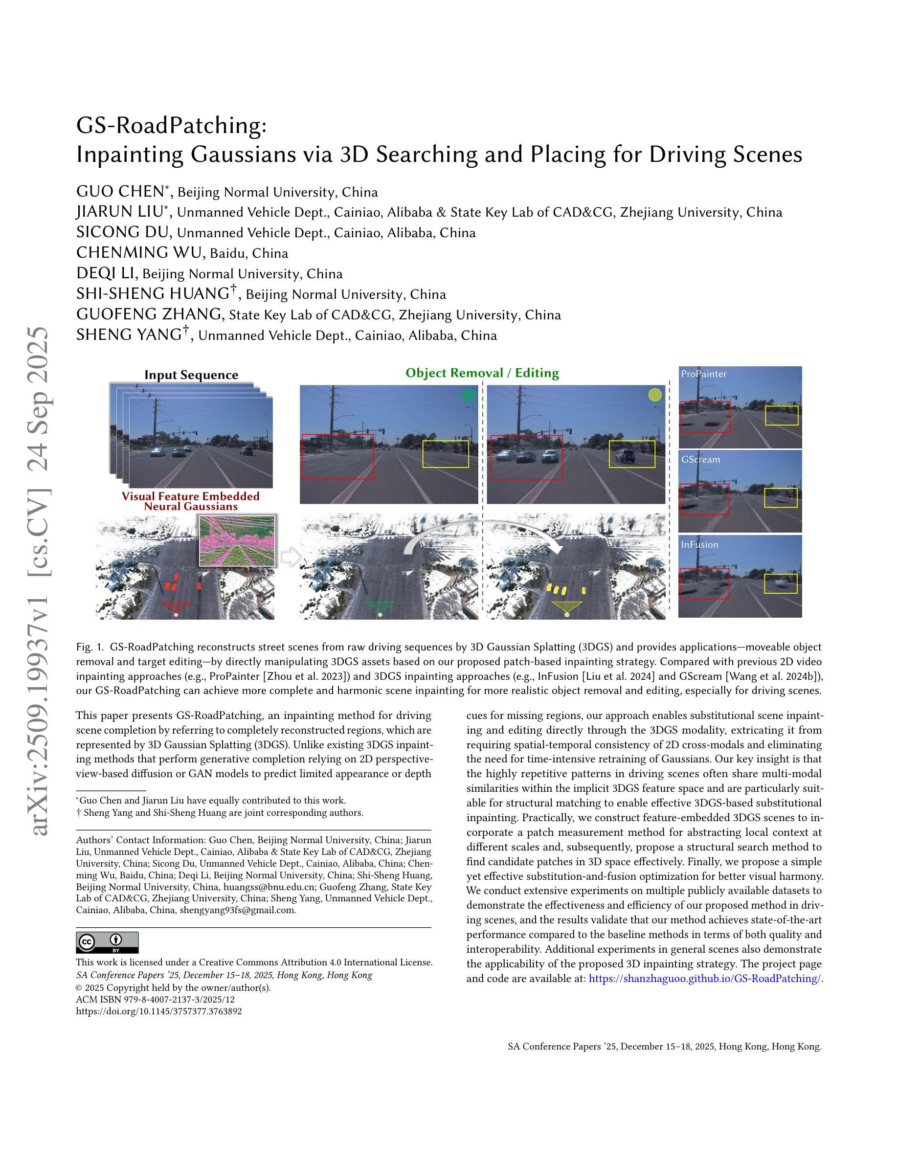 - GS-RoadPatching是一种基于三维高斯喷溅(3DGS)的驾驶场景补全方法。