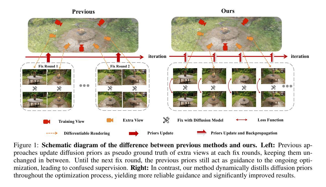 - 该框架能够将视频扩散模型中的隐性三维知识转化为显式三维高斯飞溅(3DGS)表示形式。