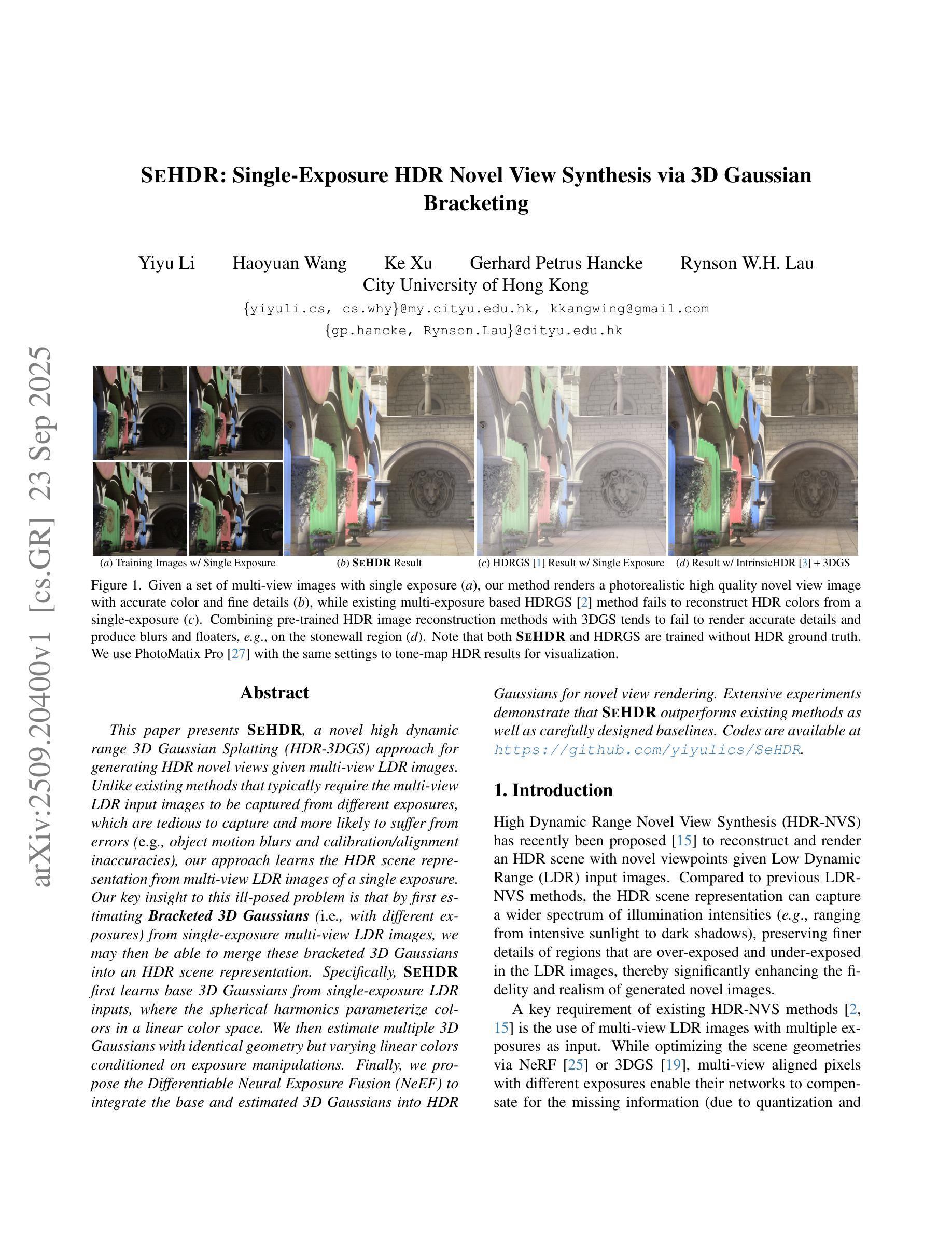 - SeHDR是一种新型HDR-3DGS技术,可从多视角LDR图像生成HDR新视角。