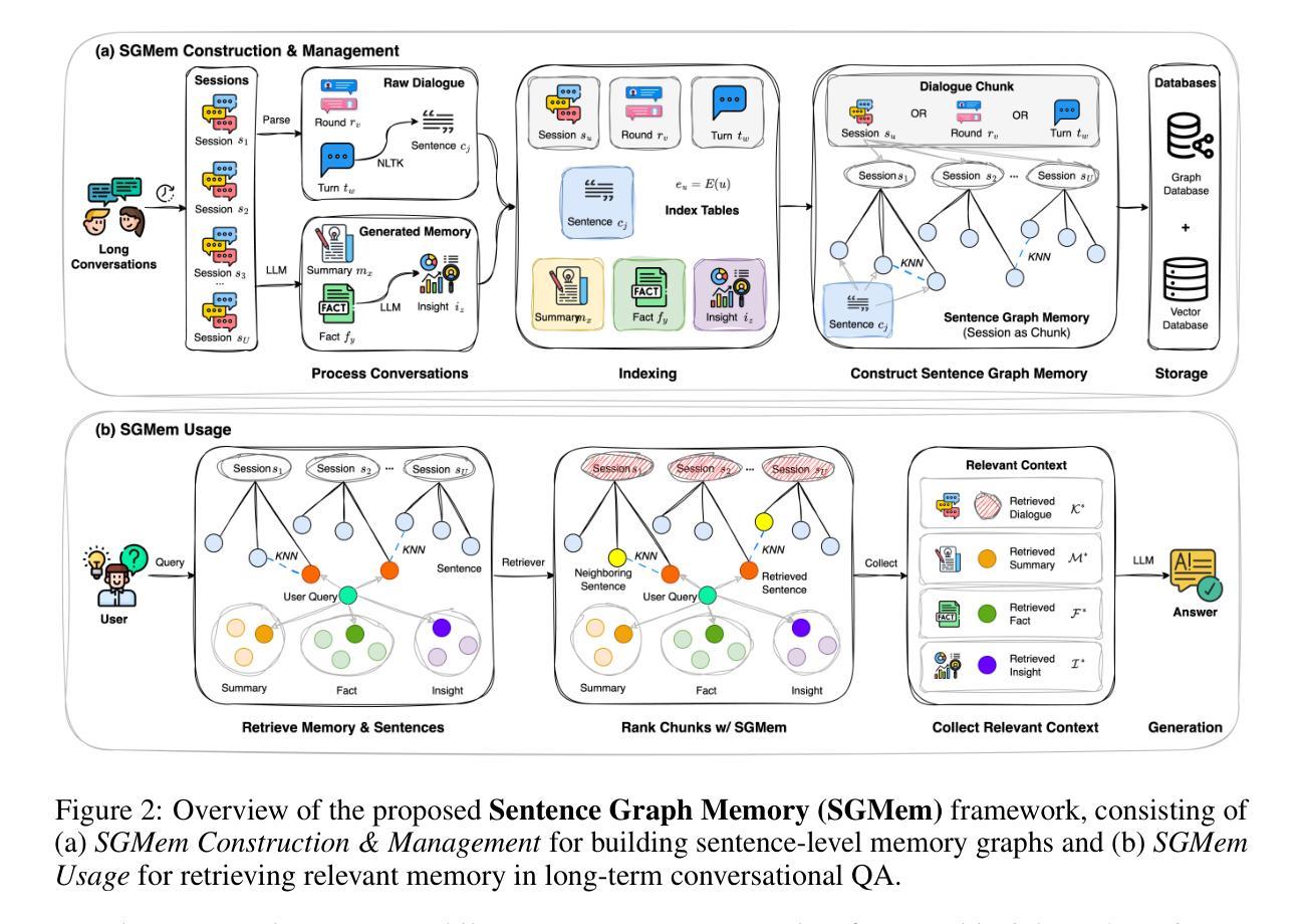 - SGMem结合了检索到的原始对话和生成的内存(如摘要、事实和见解)。