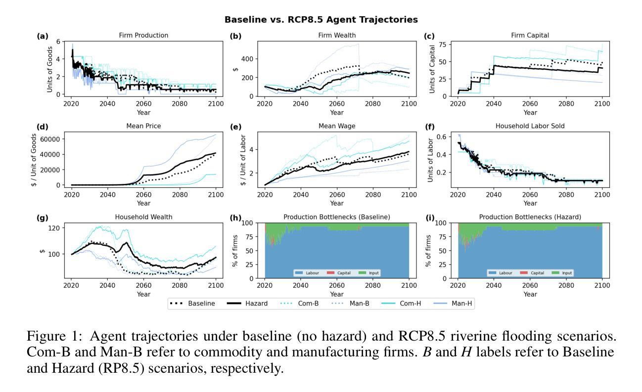 Summary:气候风险评估需要模拟空间异质性危害和适应性经济系统之间的复杂交互作用。本研究提出了一种新型地理空间主体模型,该模型结合了气候危害数据与进化学习机制,为经济主体提供评估框架。该框架结合了基于梅萨的空间建模与气候影响评估CLIMADA,引入适应性学习行为,使企业能够根据健康度选择变异进化策略来制定预算分配、定价、工资及风险适应策略。以RCP8.5情景下的河流洪水预测为例,研究显示,经过几十年的气候变化压力后,通过演化适应策略企业的生产水平会趋向于基准线的水平(没有危害时)。本框架揭示出系统性风险中的压力不限于直接受影响的实体企业也会受到影响。该研究提出的开放源代码框架有助于金融机构和企业定量评估气候风险与供应链断裂引发的连锁反应,同时评估成本效益高的适应策略。