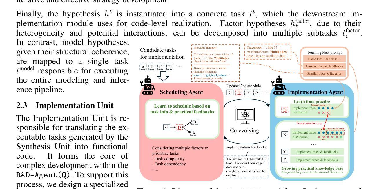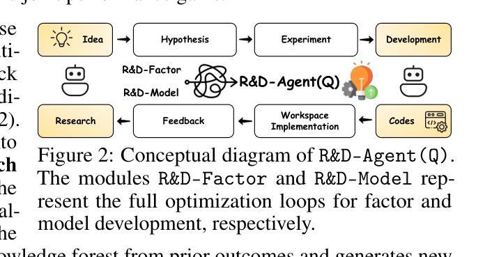 - RD-Agent(Q)包含研究阶段和发展阶段两个迭代阶段,研究阶段动态设置目标提示和假设,发展阶段则负责生成任务特定代码并在实际市场中进行测试。