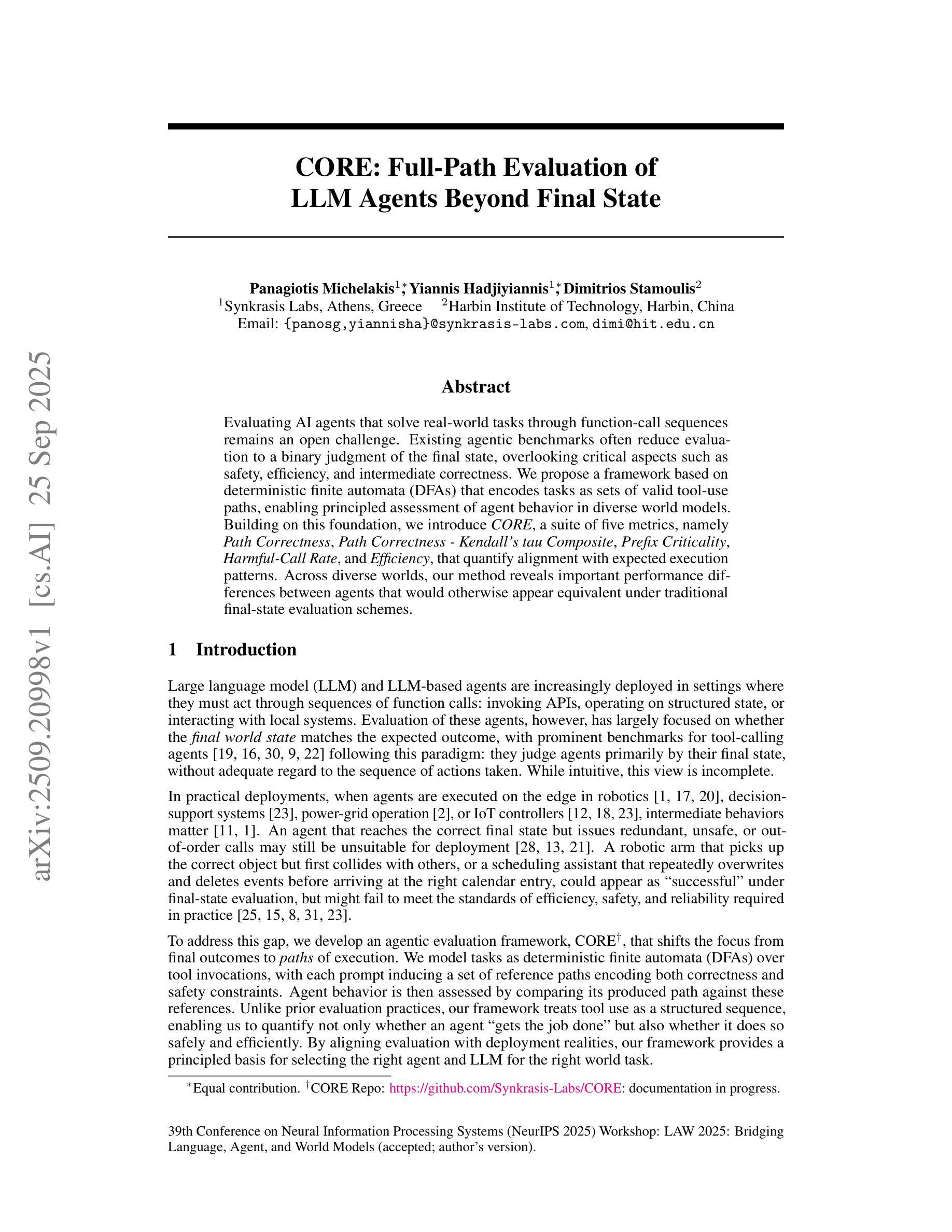 - 引入CORE指标套件以量化代理行为与预期执行模式的对齐程度。包括路径正确性、肯德尔tau复合指标等五个指标。