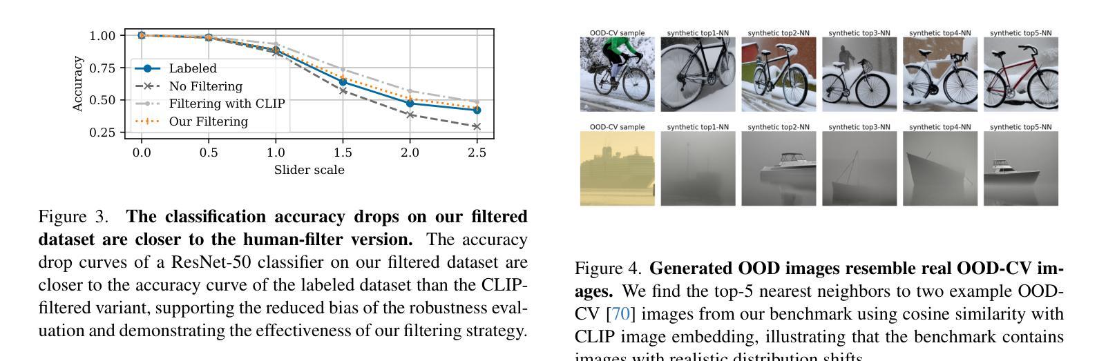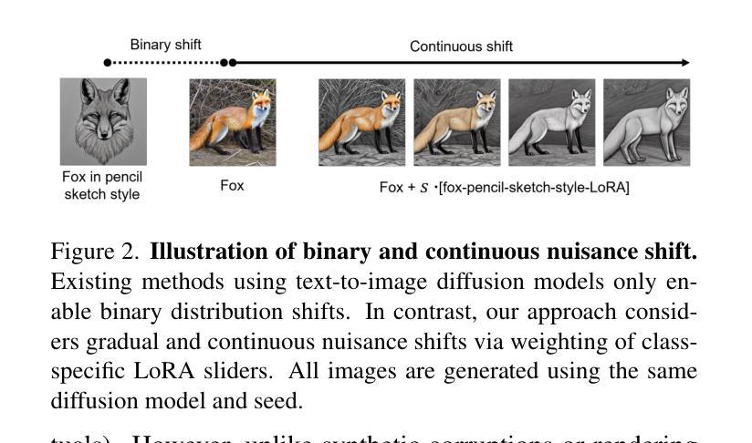 2.CNS-Bench通过使用扩散模型和LoRA适配器生成广泛的干扰移位,这些移位是连续的并在实际场景中可能发生。 - 提出了一种过滤机制,解决了在基准测试中出现的模型失败问题,使得使用生成模型的基准测试更加可靠。