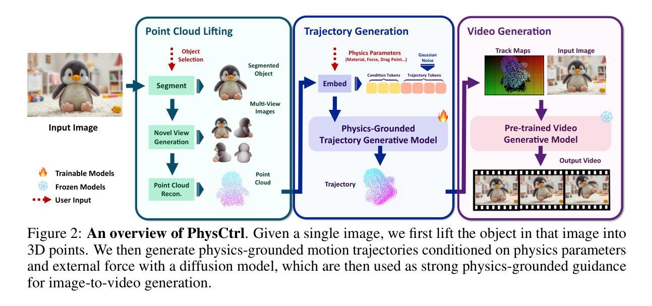 - PhysCtrl框架结合了物理参数和力控制,旨在解决现有视频生成模型在物理真实性和3D可控性方面的局限性。
