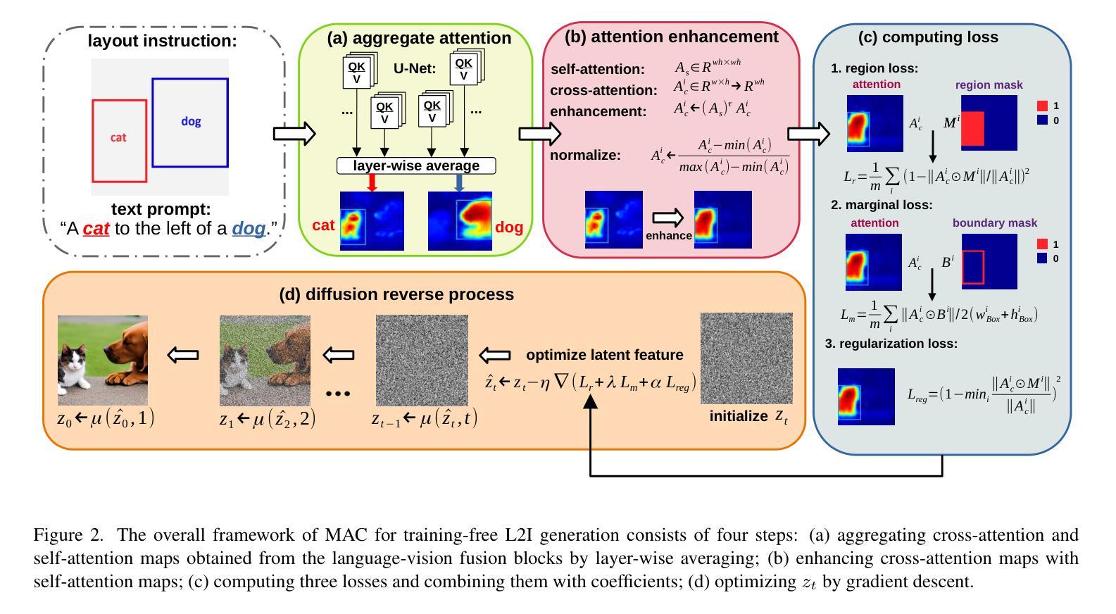 - MAC方法是一种无需训练的L2I技术,利用文本视觉交叉注意力特征图量化布局不一致性。