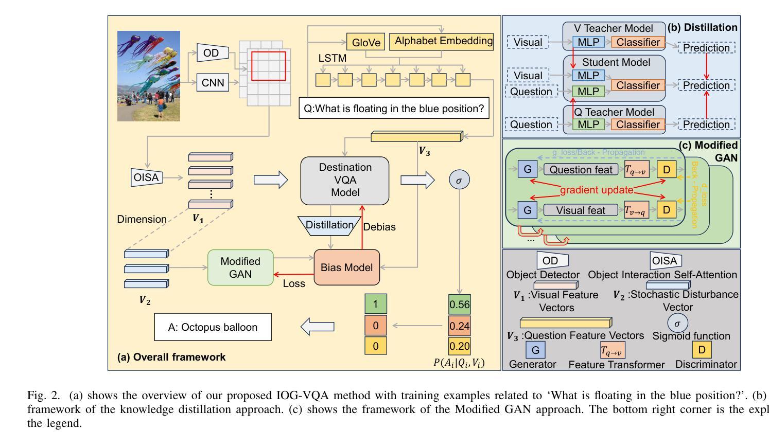 - IOG-VQA模型通过集成对象交互自注意力机制和基于GAN的去偏技术,提高VQA性能。