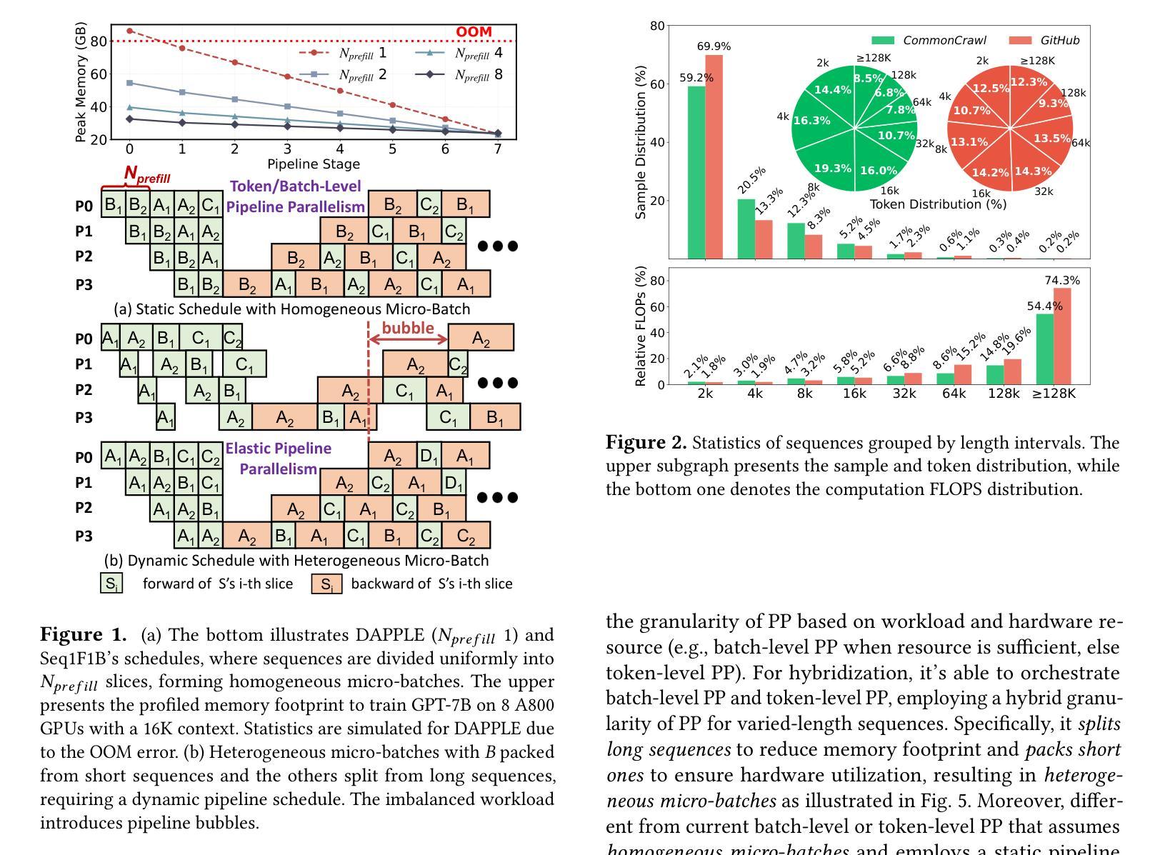 - 现实世界数据集的序列长度分布不平衡,对PP的工作负载平衡和调度效率构成挑战。