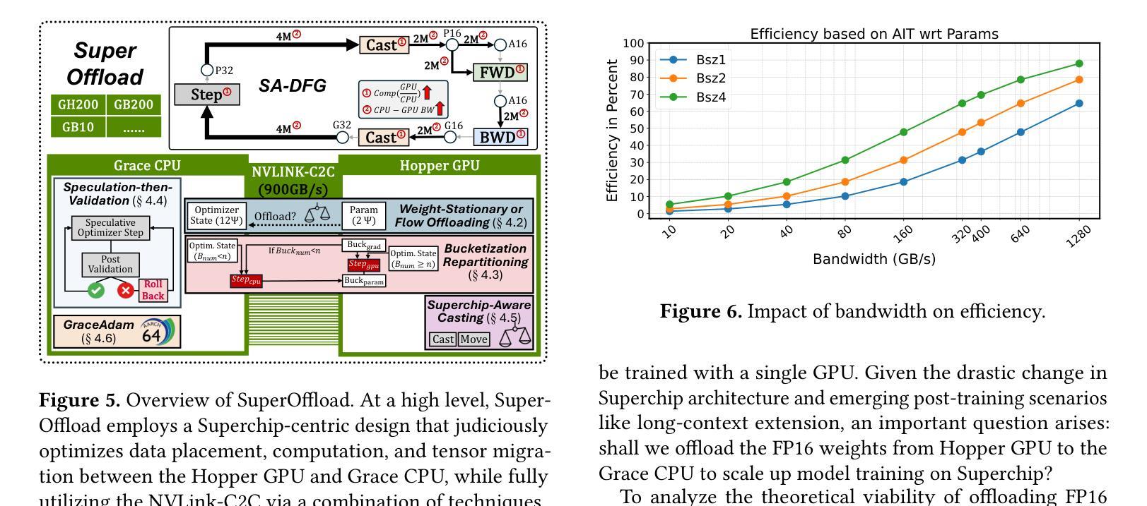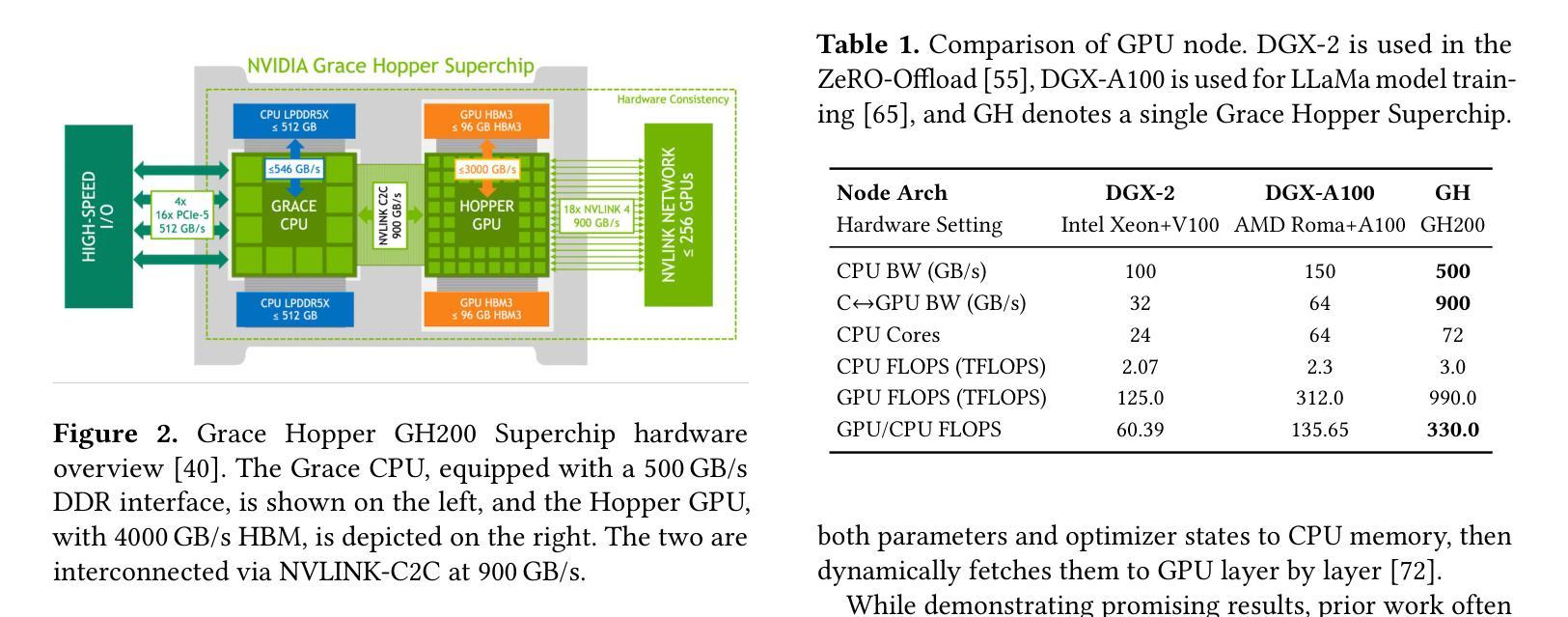 - 提出SuperOffload系统,针对超级芯片进行优化,利用Hopper GPU、Grace CPU和NVLink-C2C互联。