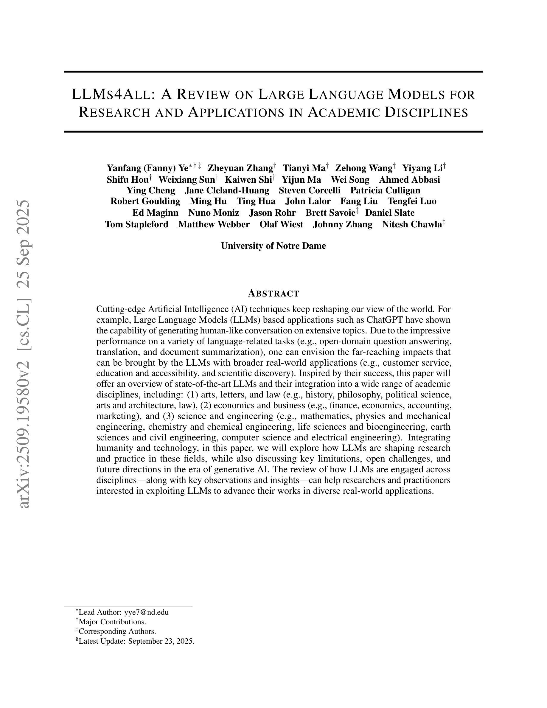 Authors:Yanfang Fanny Ye, Zheyuan Zhang, Tianyi Ma, Zehong Wang, Yiyang Li, Shifu Hou, Weixiang Sun, Kaiwen Shi, Yijun Ma, Wei Song, Ahmed Abbasi, Ying Cheng, Jane Cleland-Huang, Steven Corcelli, Patricia Culligan, Robert Goulding, Ming Hu, Ting Hua, John Lalor, Fang Liu, Tengfei Luo, Ed Maginn, Nuno Moniz, Jason Rohr, Brett Savoie, Daniel Slate, Tom Stapleford, Matthew Webber, Olaf Wiest, Johnny Zhang, Nitesh Chawla