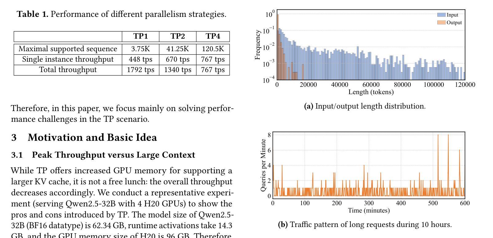 - 现有并行策略如Tensor Parallelism(TP)虽然可以处理更大上下文长度,但会降低整体吞吐量。