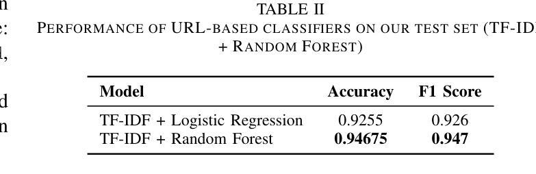 - DistilBERT模型在准确率和计算效率之间取得平衡,随机森林在识别恶意URL方面表现优秀。
