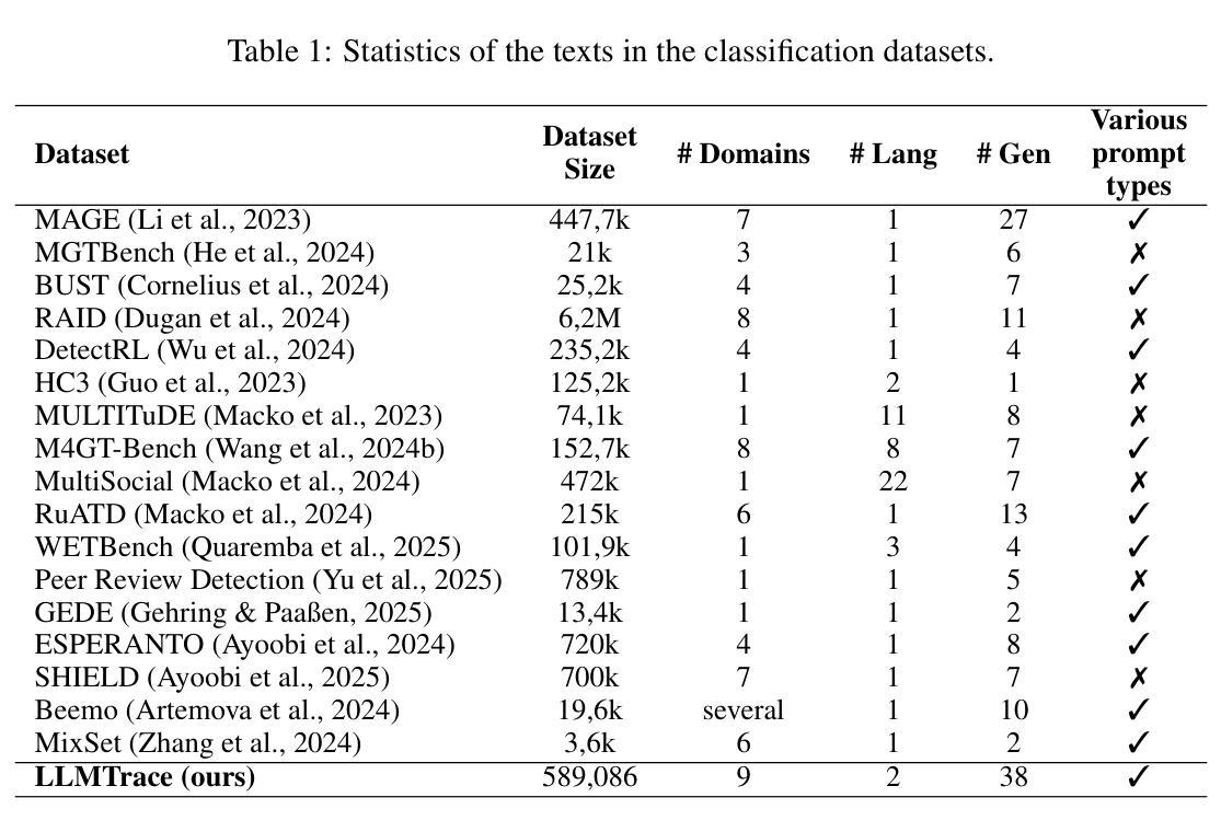 - LLMTrace是一个大规模双语语料库,包括英语和俄语文本,解决了当前数据集的不足。