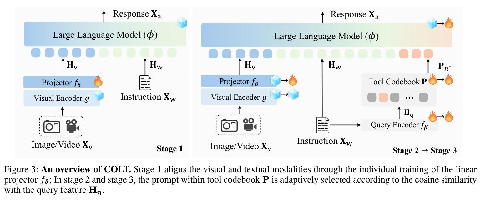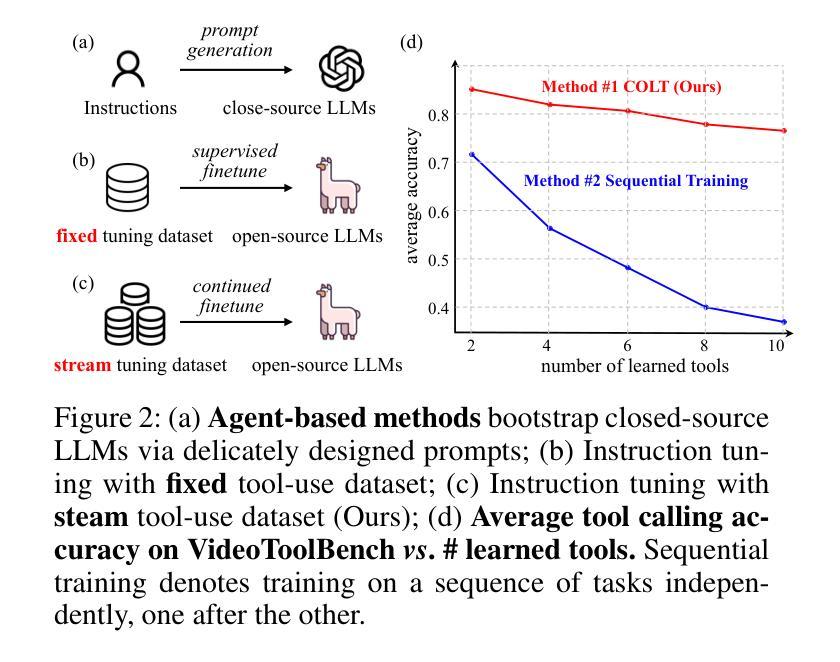 - 提出了COLT方法,可增强视频LLM在连续工具流中的自动获取工具使用能力,避免遗忘过去的学习内容。
