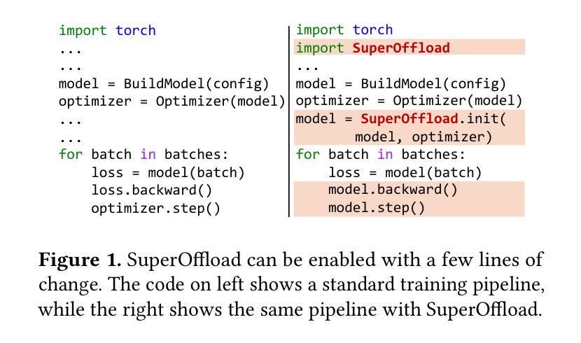 超级芯片的出现代表了下一代人工智能硬件的重大进步。这些超级芯片采用紧密耦合的异构架构,将GPU和CPU集成在同一个封装中,提供了前所未有的计算能力。然而,关于这种新架构如何受益于大型语言模型(LLM)训练的研究寥寥无几。在这项工作中,我们首次基于卸载技术研究了针对超级芯片的大型语言模型训练解决方案。我们观察到超级芯片与传统松散耦合的GPU-CPU架构之间的重大差异,这需要重新审视关于卸载的现有假设。基于此,我们推出了以超级芯片为中心的卸载系统SuperOffload,它更有效地同时使用Hopper GPU、Grace CPU和NVLink-C2C互联。SuperOffload通过结合多种技术实现这一目标,如自适应权重卸载、分桶再分区、超级芯片感知转换、推测执行以及针对Grace CPU的高度优化的Adam优化器。我们在NVIDIA GH200上对SuperOffload的评估表明,与最新的基于卸载的系统相比,其吞吐量提高了2.5倍,能够在单个超级芯片上训练高达25B的模型,同时实现高训练吞吐量。我们还通过ZeRO风格的数据并行性和DeepSpeed-Ulysses序列并行性扩展了SuperOffload,能够在8个GH200上训练具有高达1百万令牌序列长度的13B模型,同时实现55%的最大功能利用率。