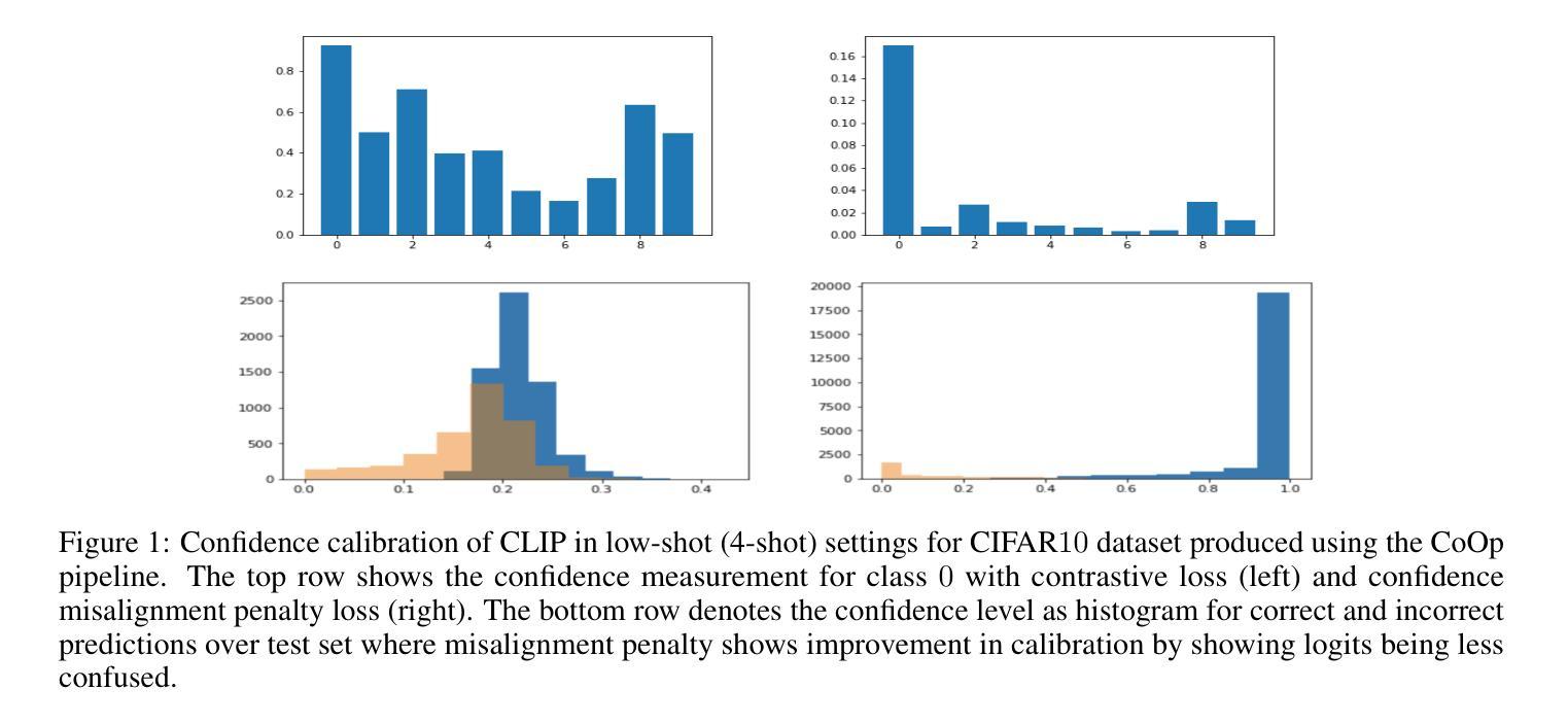 在基于基础模型的现实世界决策系统中,当用于下游视觉分类任务时,置信度校准正成为一个新兴的挑战。由于各种原因,无论图像-语言对是否协调一致,CLIP 头的对数分数仍然很大,这使得在数据空间中难以解决这一问题,尤其是在小样本情况下。我们提出了一种损失目标中的惩罚项,即每当微调过程中出现错误分类时对其进行惩罚。通过将与两个概率的相对幅度相当的似然对数移动到真实类别来实现这一点。我们将其称为置信度不匹配惩罚(CMP)。在 12 个视觉数据集和 5 个领域泛化数据集上的大量实验支持了我们方法的校准性能,优于当前最佳水平。CMP 优于基准提示学习方法,在期望校准误差(ECE)方面平均提高了 6.01%,最低提高 4.01%,最高提高 9.72%。