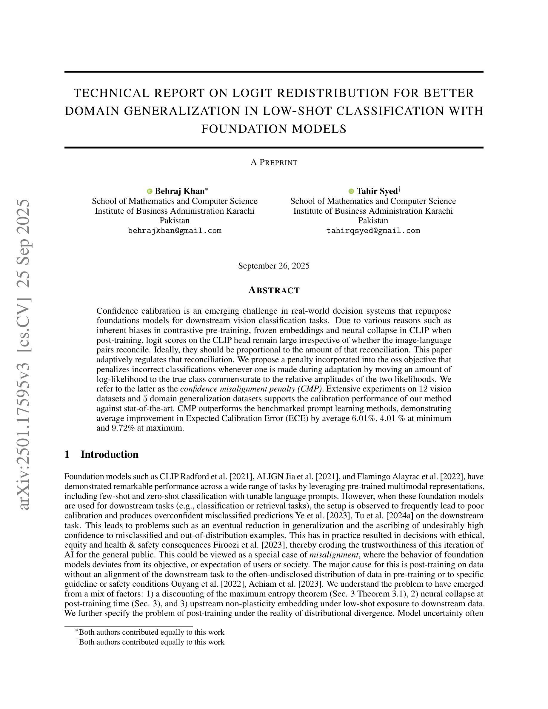 Technical report on label-informed logit redistribution for better domain generalization in low-shot classification with foundation models