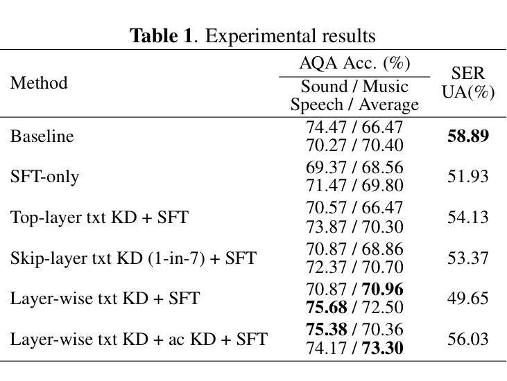 - 双重维度的策略对蒸馏过程进行了精细控制,有效缩小了符号推理与语音表示之间的差距。