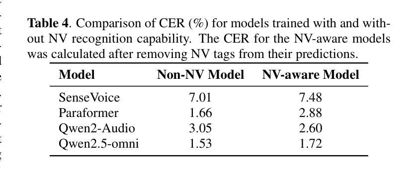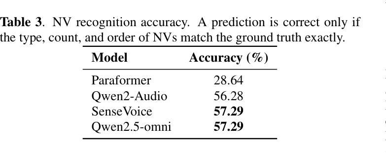 - 主流ASR系统在转录词汇内容方面表现出色,但在识别嵌入在语音中的非语言声音(NVs)方面存在不足。
