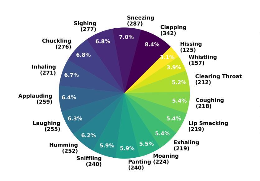 - MNV-17包含了最广泛的非语言声音类别集,包括17种常见且平衡良好的类别。