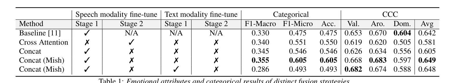 - 单独微调RoBERTa和WavLM,再结合特征融合,获得最高效价性能。
