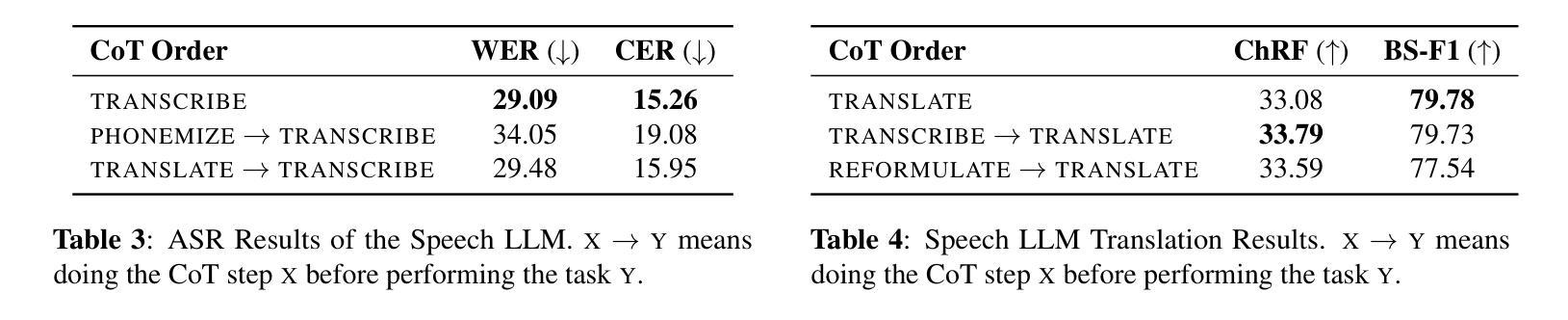 - 训练语言模型进行多步骤的Chain-of-Thought,提升了语音识别和翻译的性能。
