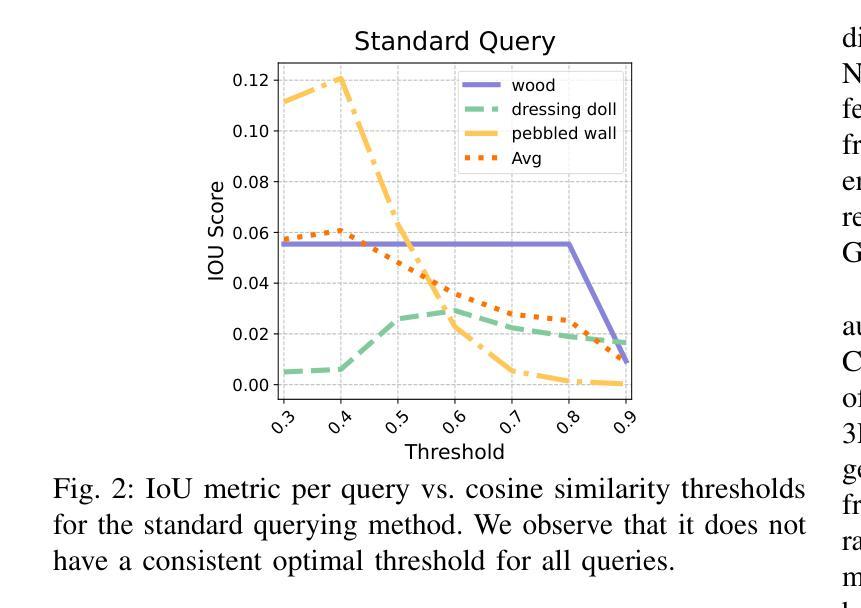 开放式词汇表的3D场景理解对于机器人应用至关重要,例如自然语言驱动的操控、人机互动和自主导航。现有的查询3D高斯拼接的方法往往面临2D掩膜监督不一致的问题,且缺乏稳健的3D点级检索机制。在这项工作中,(i)我们提出了一个新型的点级查询框架,通过对分割掩膜进行追踪来建立语义一致的真实地面来提炼语言高斯分布;(ii)我们引入了一种以GT为中心的查询方法,该方法首先检索提炼后的真实地面,然后利用真实地面来查询各个高斯分布。在三个基准数据集上的大量实验表明,所提出的方法优于最新技术。我们的方法在LERF、3D-OVS和Replica数据集上分别实现了+4.14、+20.42和+1.7的mIoU改进。这些结果验证了我们的框架在真实世界的机器人系统中进行开放式词汇表理解的可行性,是一项很有前景的尝试。