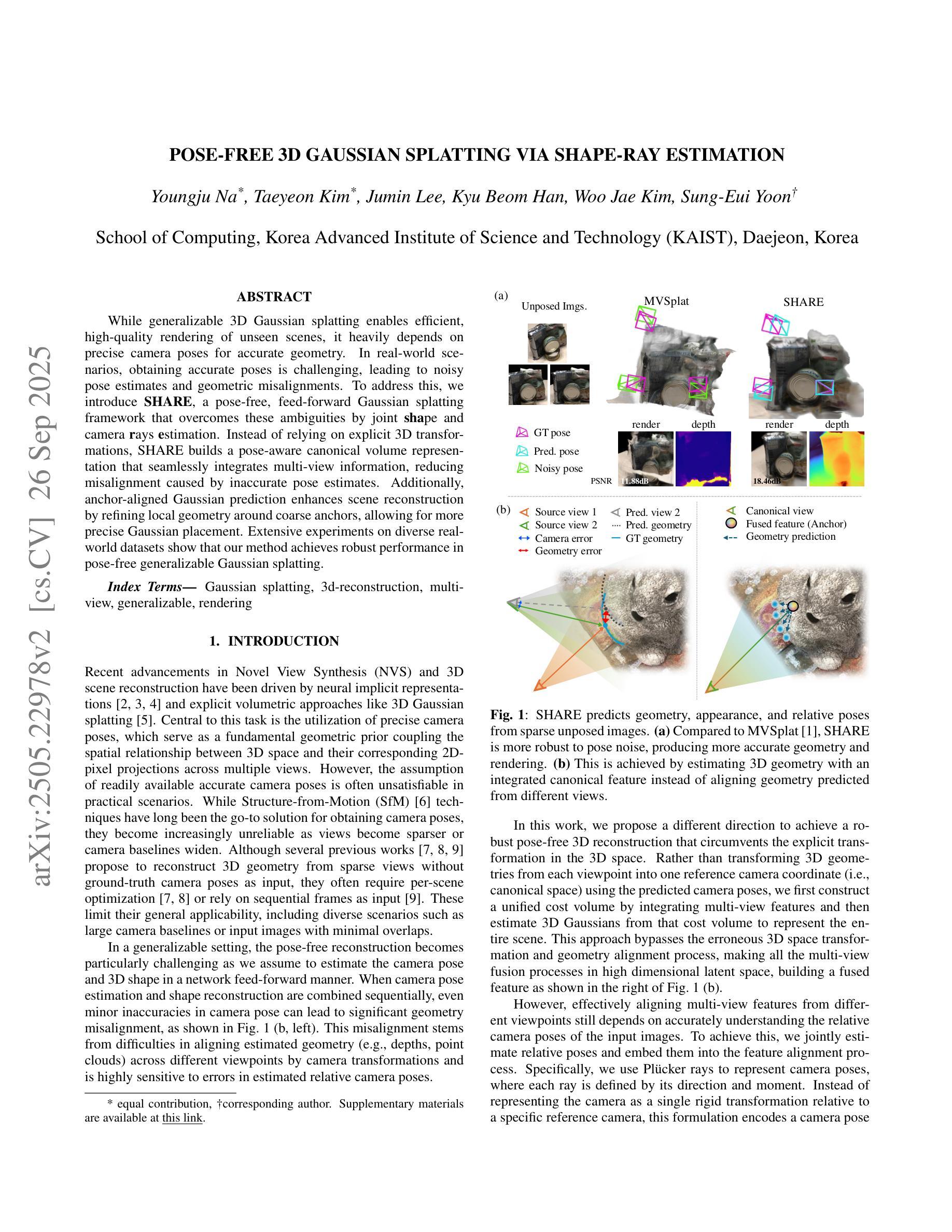 - SHARE是一种无需姿态的展平框架,解决了因姿态估计不准确导致的几何错位问题。