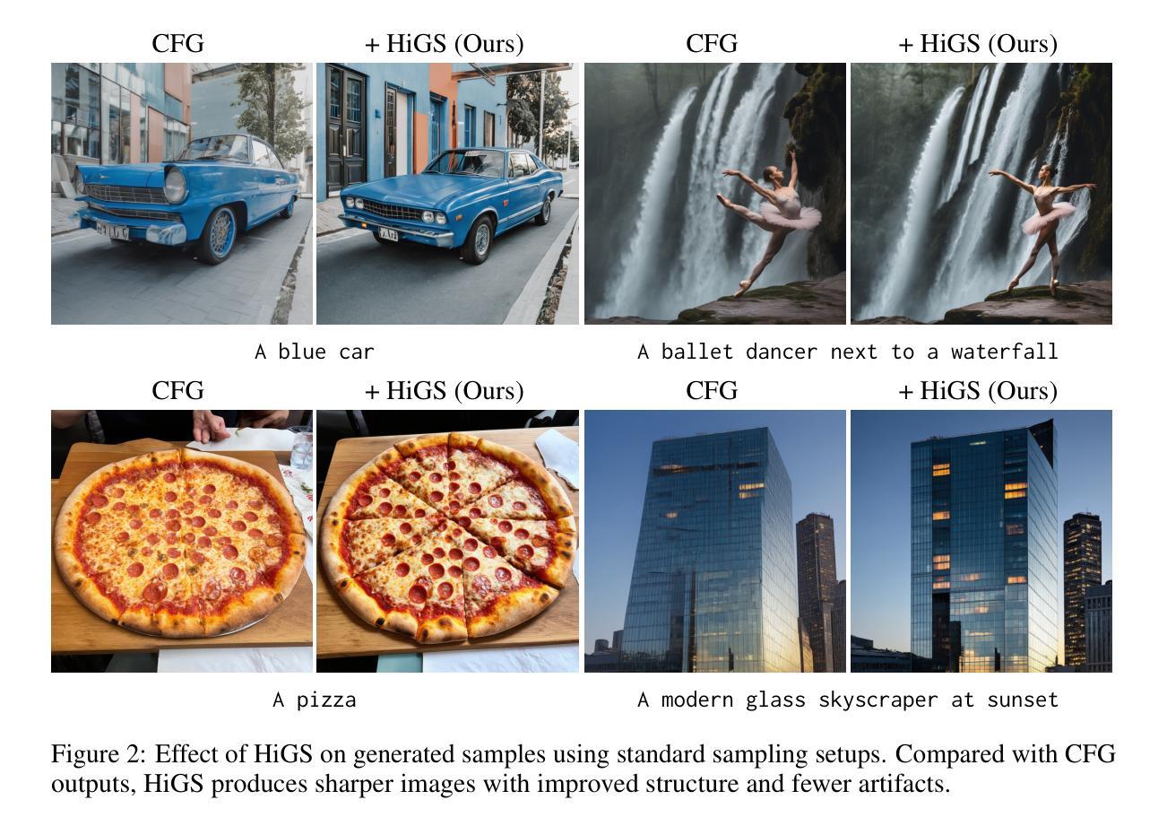 - HiGS方法无需额外的计算成本,并能无缝集成到现有的扩散框架中。