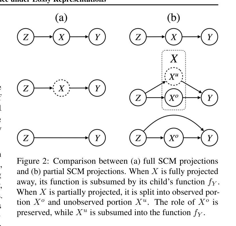 关于因果抽象的研究是人类智力的两个核心组成部分之间的桥梁:确定因果关系的能力和将复杂模式解释为抽象概念的能力。在形式上,因果抽象框架定义了复杂低层次因果模型与简单高层次模型之间的联系。现有定义的一个主要局限性在于,在考虑有损抽象函数时,它们定义得并不明确,在有损抽象函数中,多个低层次的干预措施可能会产生不同的效果,而同时映射到同一高层次干预措施上(这被称为抽象不变条件假设)。在本文中,我们引入了一种新的抽象类型,称为投影抽象,它将现有定义推广到容纳有损表示。我们展示了如何从低层次模型构建投影抽象,以及它如何将等效的观察、干预和假设因果查询从低层次翻译到高层次。鉴于在实践中真实模型很少可用,我们证明了一种新的图形标准,用于从有限的低层次数据中识别和估计高层次因果查询。最后,我们通过实验展示了投影抽象模型在高维图像设置中的有效性。
