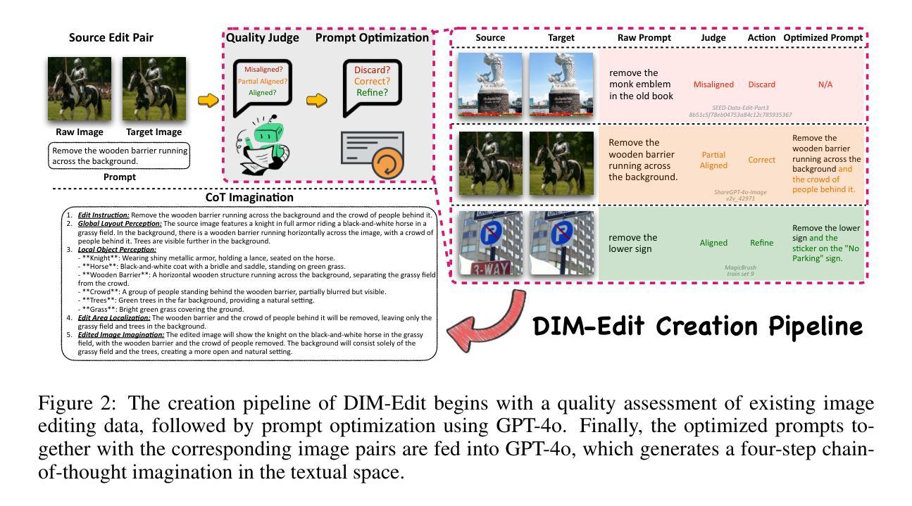 - Draw-In-Mind数据集的引入是为了解决职责不平衡问题,分为用于增强复杂指令理解的DIM-T2I和提供图像编辑设计蓝图的DIM-Edit两个子集。