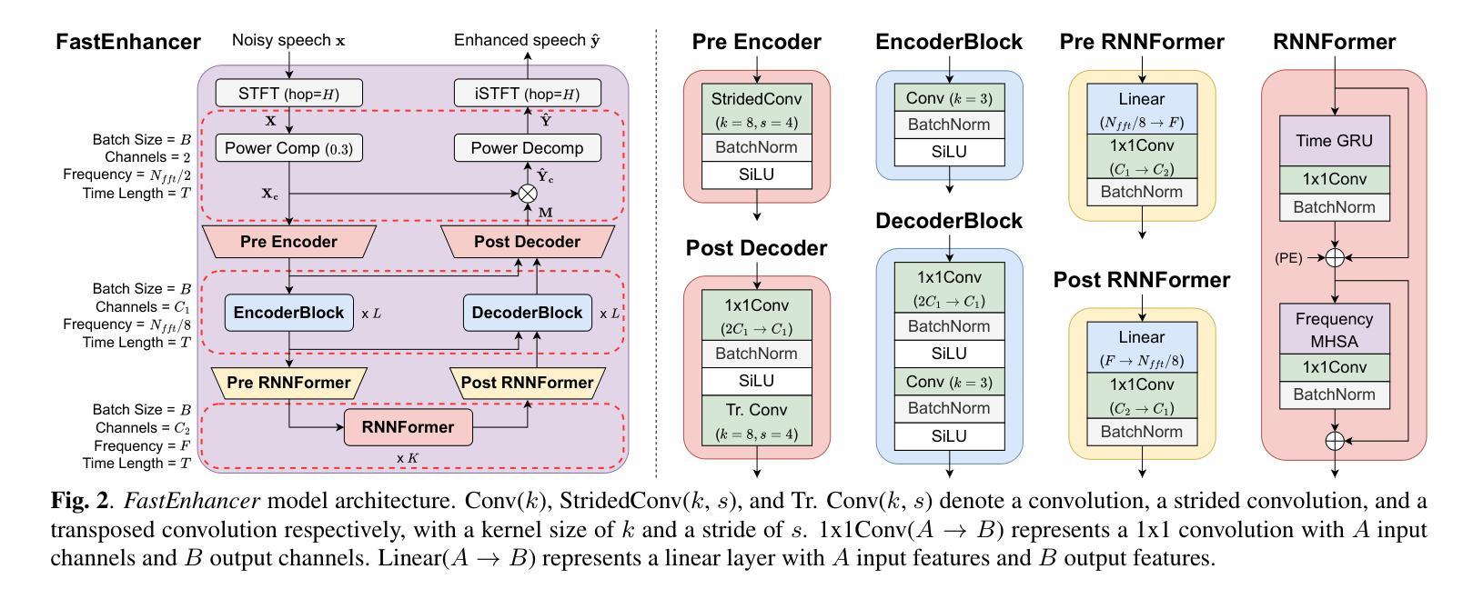 - FastEnhancer具有简单的编码器-解码器结构,采用高效的RNNFormer块。