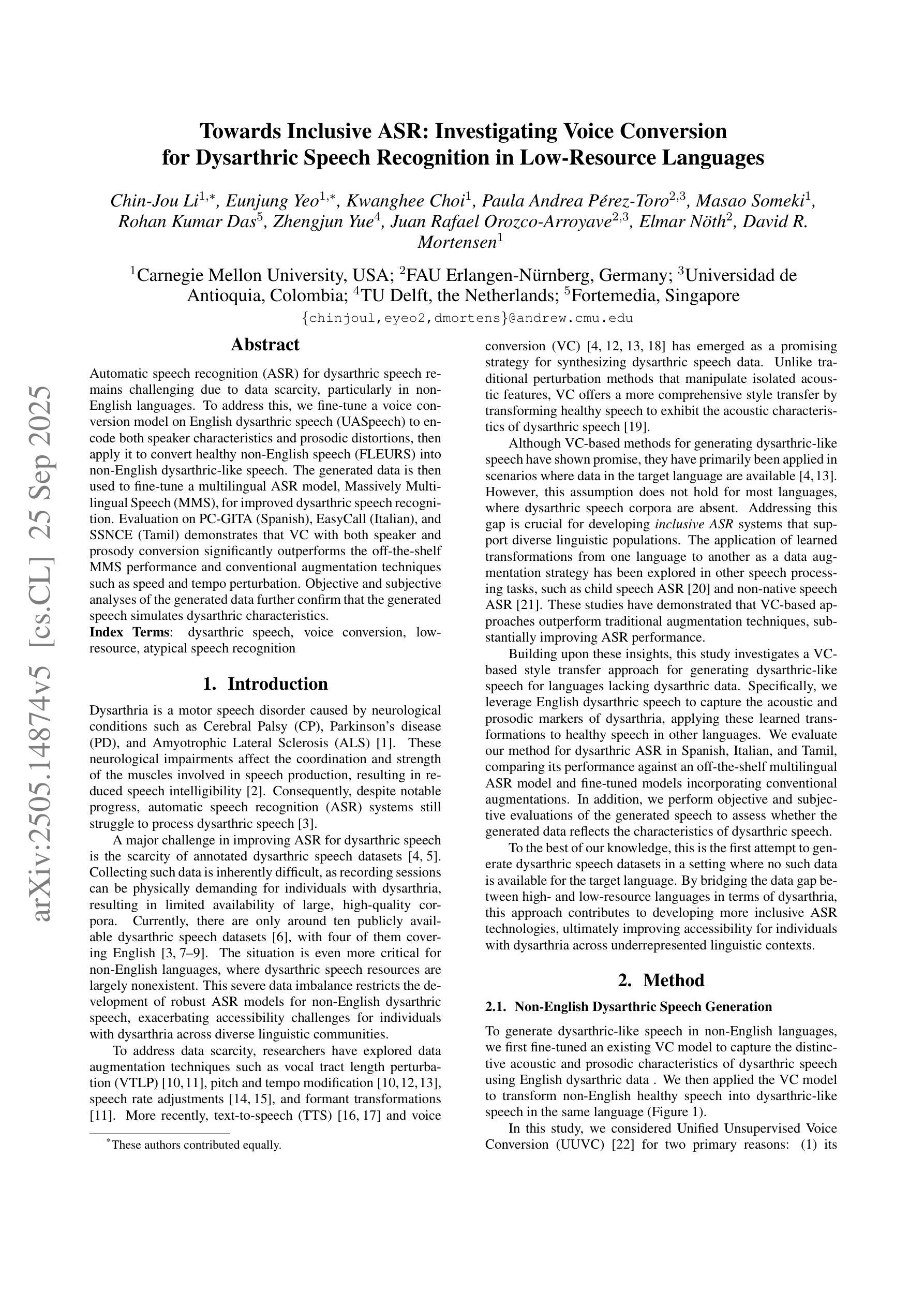- 自动语音识别(ASR)在识别发音障碍的语音时面临挑战,主要是由于数据的稀缺性,特别是在非英语环境中。