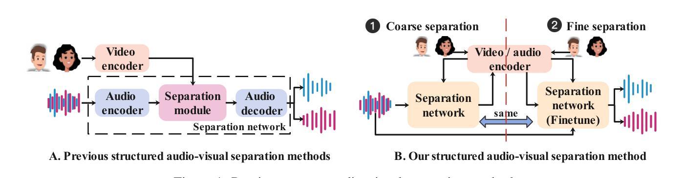 - 粗分离阶段通过初步估算从混合语音和视觉输入重建粗略音频波形。
