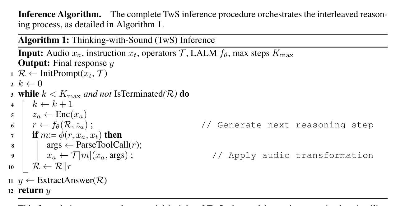 - Thinking-with-Sound(TwS)框架结合了语言推理和即时音频域分析,使模型能够主动与音频信号互动。