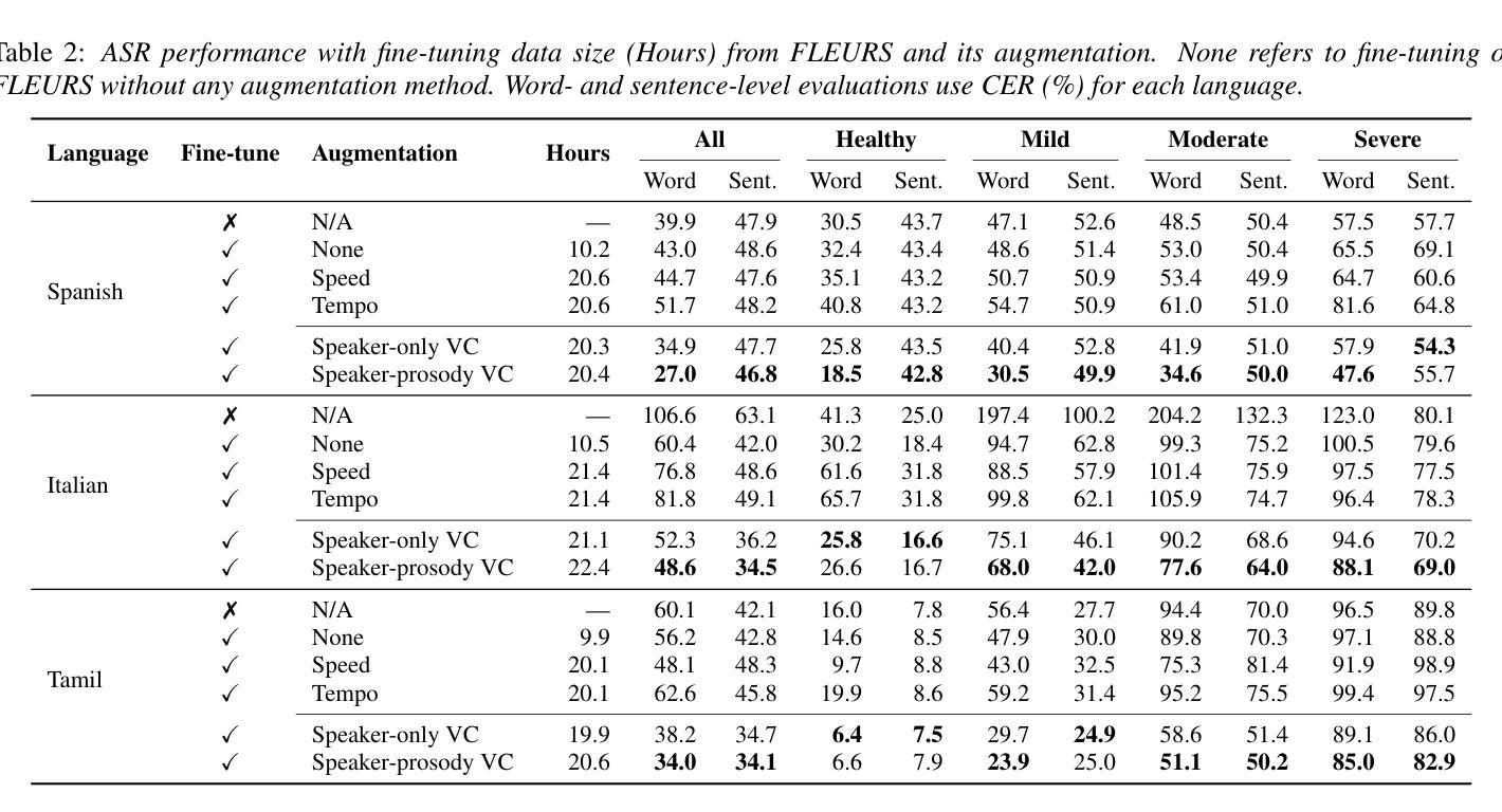 - 生成的语音数据用于微调多语种ASR模型,提高识别发音障碍语音的性能。