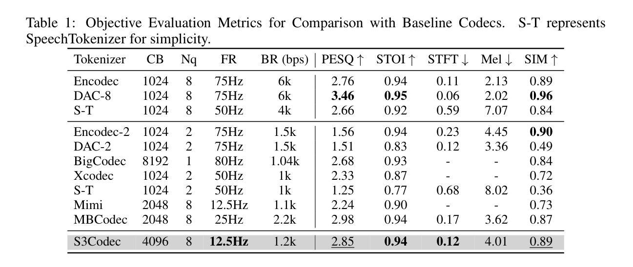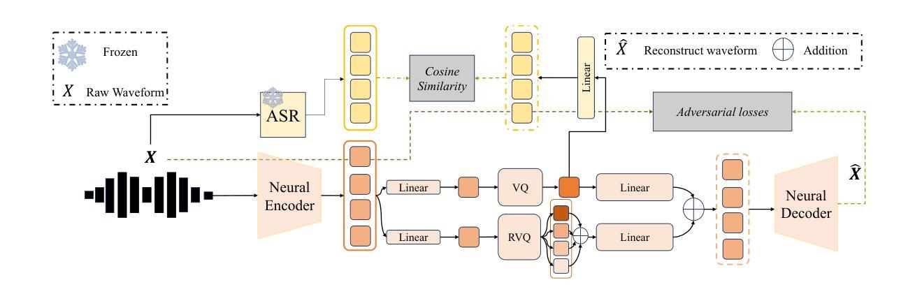 - 引入S3Codec:采用分裂RVQ码组技术,通过来自先进ASR模型的语义蒸馏注入显式语言特征,提供结构化表示。