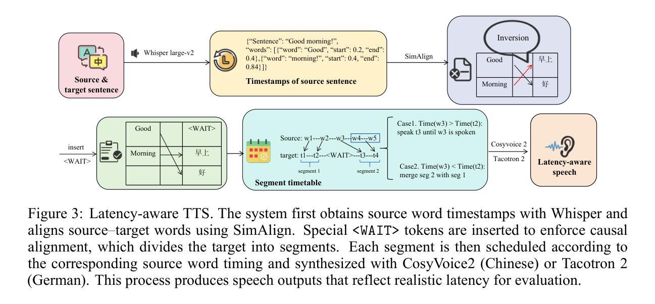 - 为评估翻译质量和延迟,开发了一个延迟感知的TTS管道。