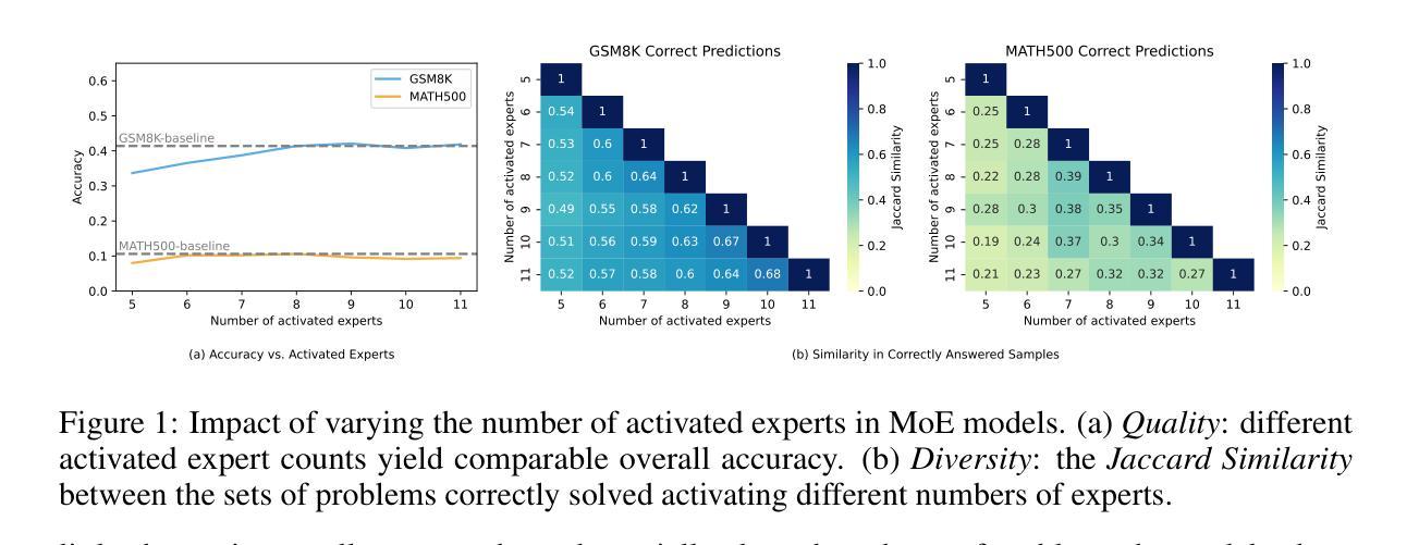 - 在混合专家(MoE)LLMs中,激活的专家数量不同会产生不同的解决方案集,表现出稳定的准确性。