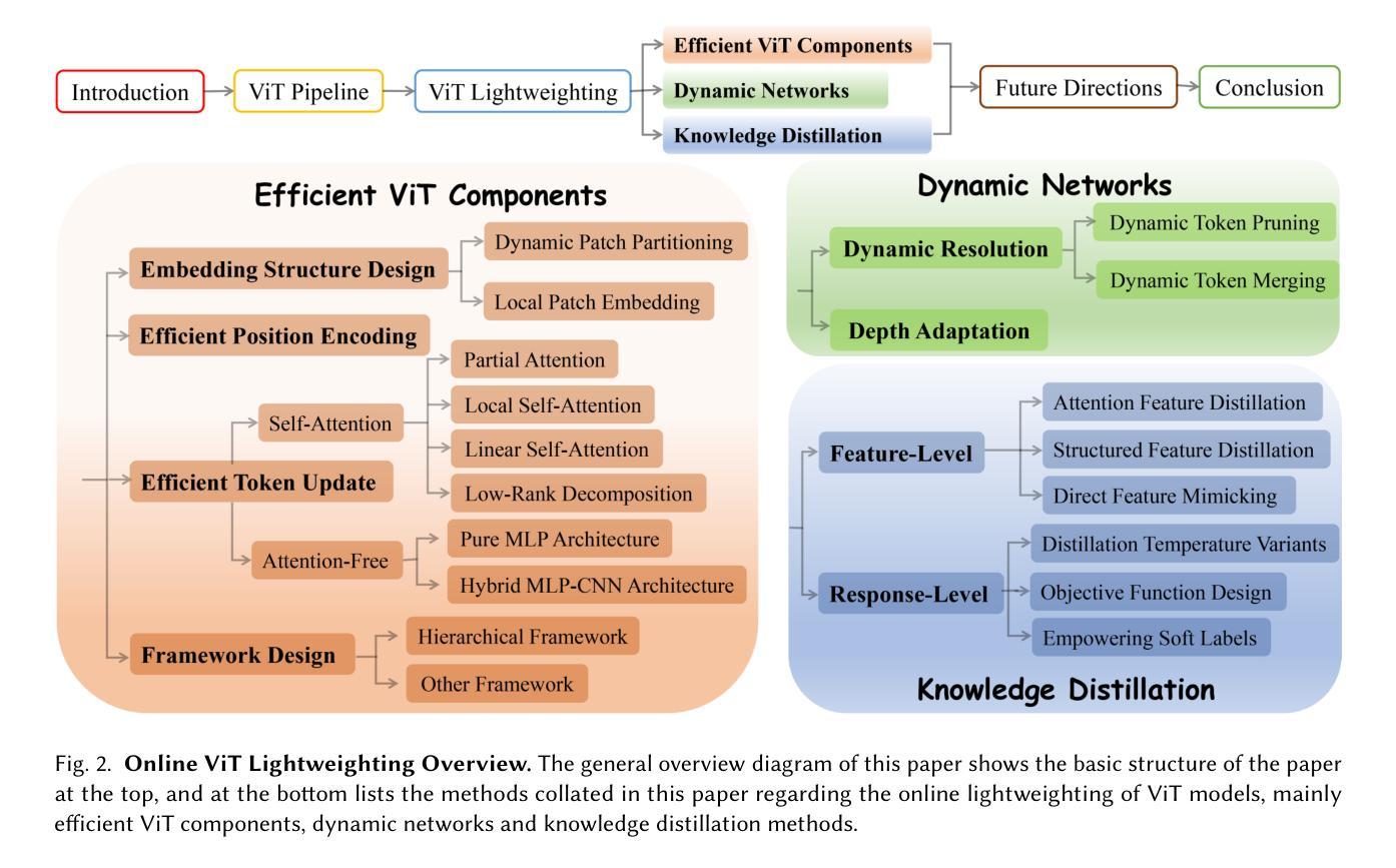 - 轻量化视觉变压器的研究涉及高效组件设计、动态网络和知识蒸馏等方面。