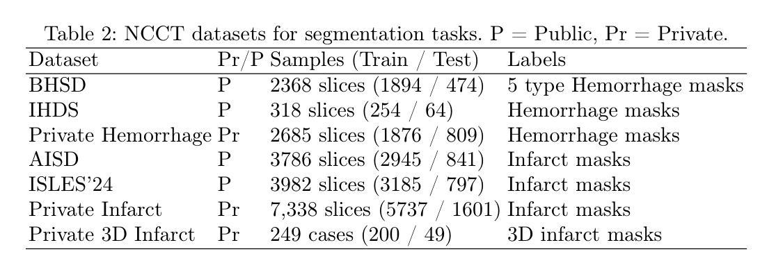 - 研究涵盖了梗死和出血分割、异常分类、出血亚型分类等多个卒中分析任务。