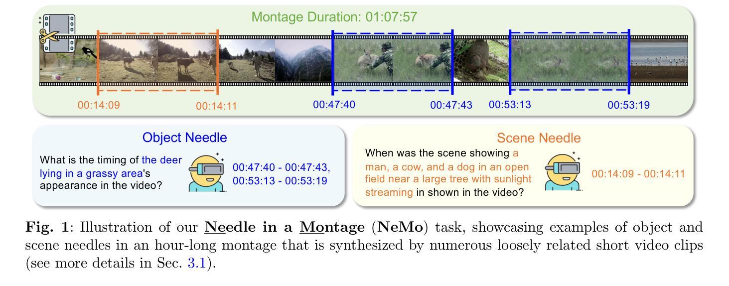- 提出了一项新的任务“蒙太奇中的针”(NeMo),旨在评估视频大语言模型(VideoLLM)的关键推理能力。