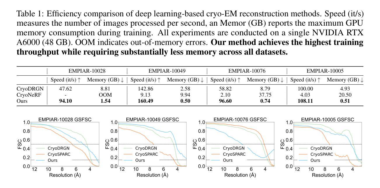 - 与其他先进方法相比,GEM在cryo-EM基准测试中实现了更快的训练和更低的内存占用。