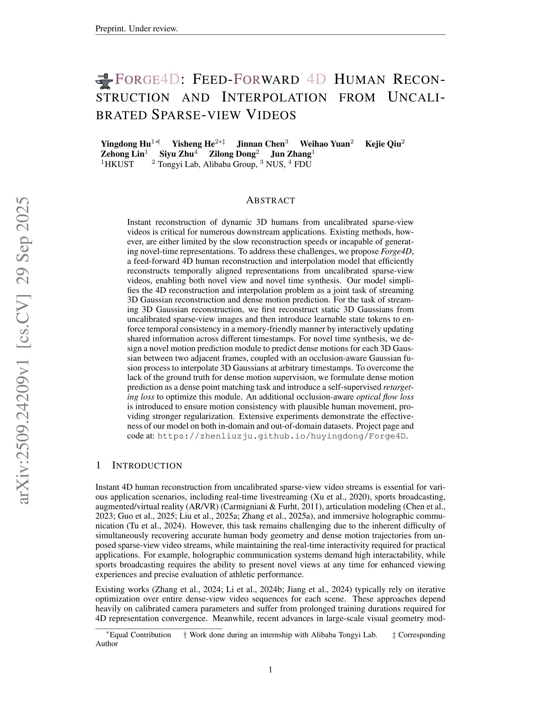 - Forge4D是一个前馈4D人体重建与插值模型,用于从稀疏视角视频重建动态3D人体。