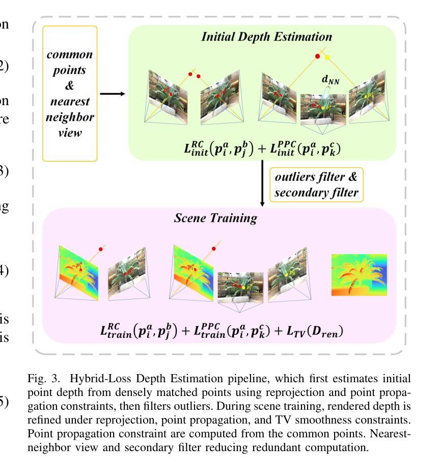 - DWGS引入了Hybrid-Loss深度估计模块,利用密集匹配先验和重投影技术,实现多视角一致性。