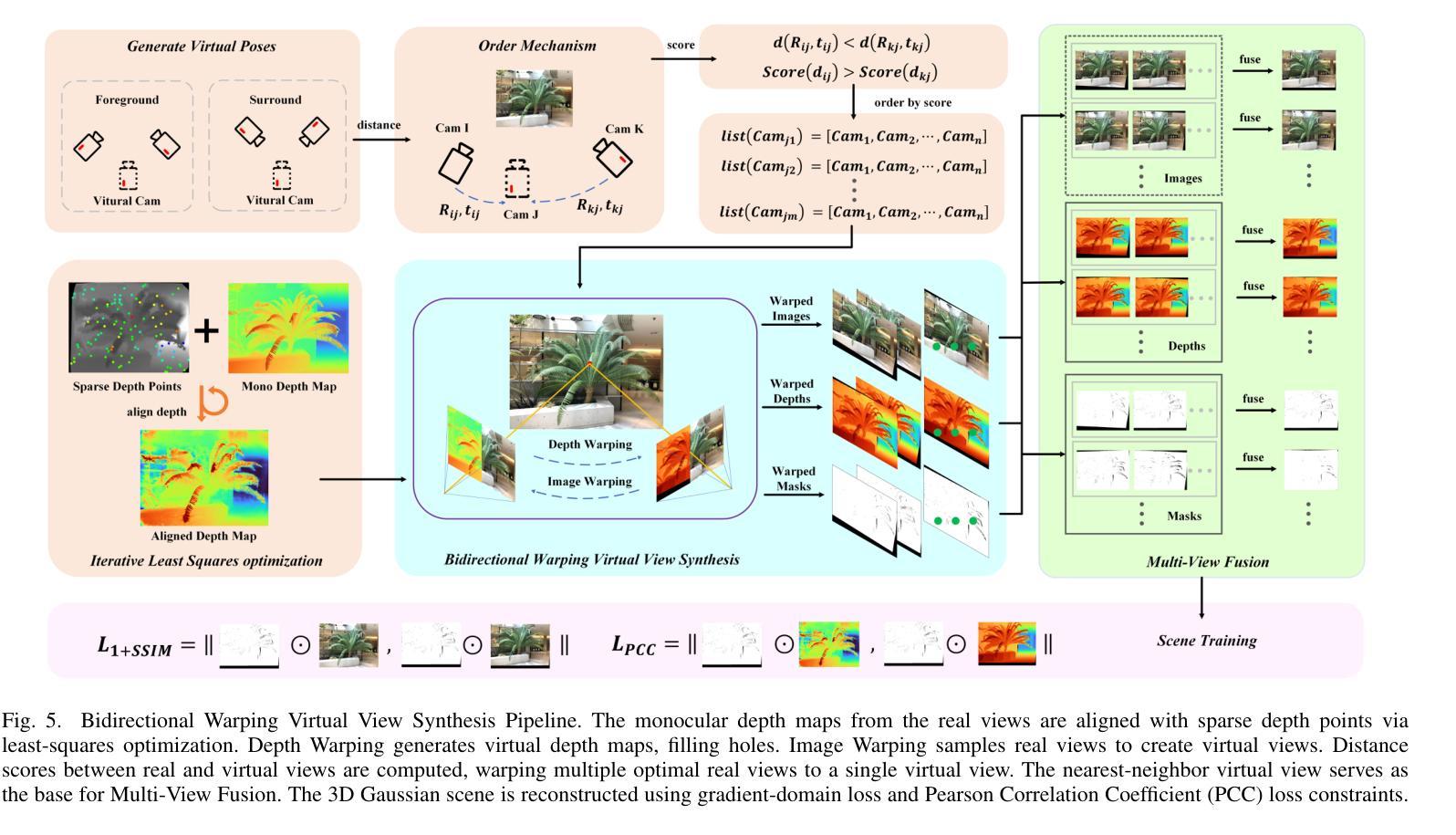 - Bidirectional Warping Virtual View Synthesis方法生成虚拟训练视图,以加强几何和光度约束。