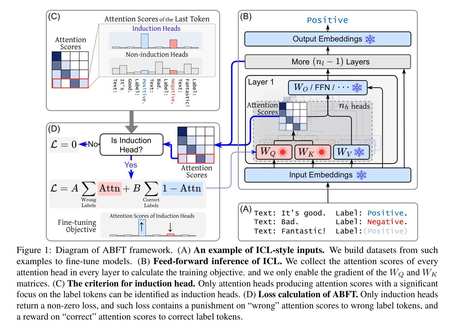 - ABFT方法关注注意力分数,使模型在上下文中聚焦于正确的标签标记。