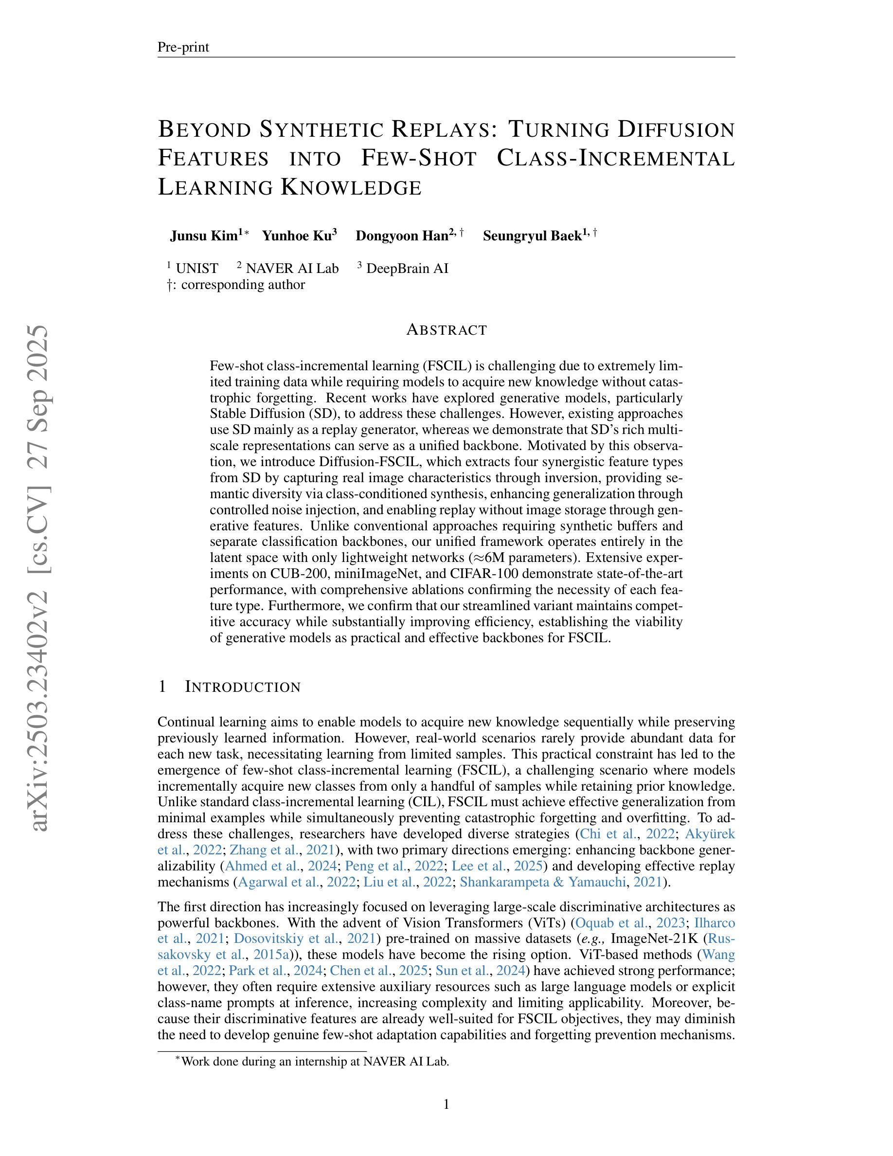 - 介绍了Diffusion-FSCIL方法中的四种协同特征类型,包括通过反转捕获真实图像特征、通过类别条件合成提供语义多样性、通过受控噪声注入增强泛化能力以及在潜在空间中进行回放的功能。