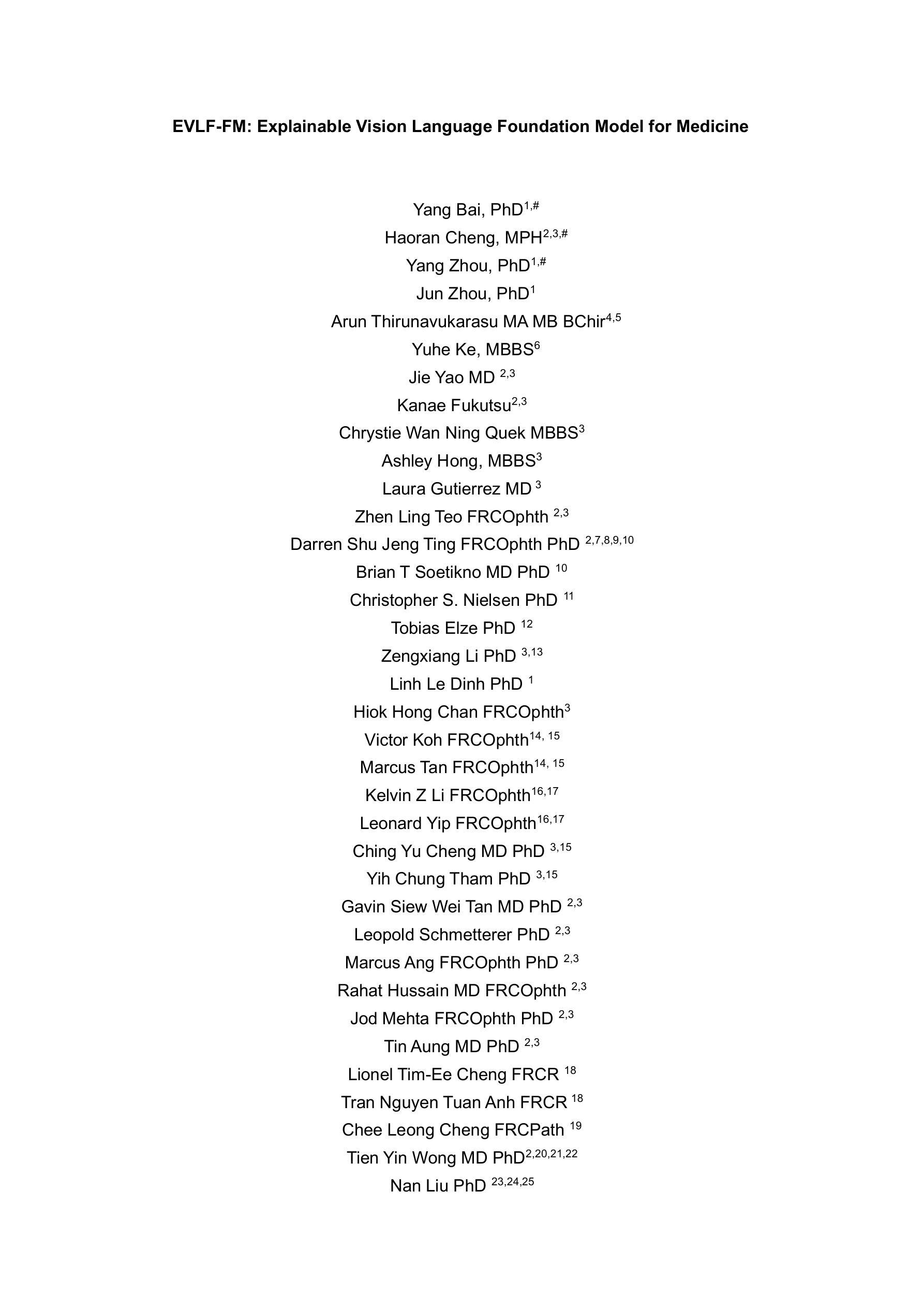 Authors:Yang Bai, Haoran Cheng, Yang Zhou, Jun Zhou, Arun Thirunavukarasu, Yuhe Ke, Jie Yao, Kanae Fukutsu, Chrystie Wan Ning Quek, Ashley Hong, Laura Gutierrez, Zhen Ling Teo, Darren Shu Jeng Ting, Brian T. Soetikno, Christopher S. Nielsen, Tobias Elze, Zengxiang Li, Linh Le Dinh, Hiok Hong Chan, Victor Koh, Marcus Tan, Kelvin Z. Li, Leonard Yip, Ching Yu Cheng, Yih Chung Tham, Gavin Siew Wei Tan, Leopold Schmetterer, Marcus Ang, Rahat Hussain, Jod Mehta, Tin Aung, Lionel Tim-Ee Cheng, Tran Nguyen Tuan Anh, Chee Leong Cheng, Tien Yin Wong, Nan Liu, Iain Beehuat Tan, Soon Thye Lim, Eyal Klang, Tony Kiat Hon Lim, Rick Siow Mong Goh, Yong Liu, Daniel Shu Wei Ting